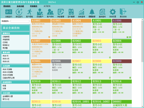 签约管理:管理出租签约信息,支持提前终止合同、合同信息补打以及缴费日历功能。签约管理界面可以快速续签和退租,功能强大方便。