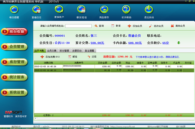 美萍按摩养生院管理系统(按摩会员软件,按摩养生会员软件,护理软件,理疗软件,养生管理软件)