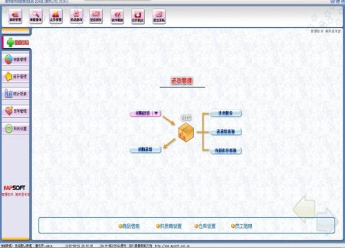 进货管理:进行商品采购入库,采购退货,进/退单据和当前库存查询,与供货商的往来帐务。