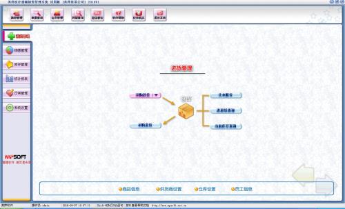 进货管理:进行商品采购入库,采购退货,进/退单据和当前库存查询,与供货商的往来帐务。