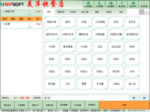 美萍快餐管理系统是一款专业的快餐店管理软件,美萍快餐软件专为餐饮行业中先交钱后消费经营模式而特别定制,解决了餐饮管理软件中对快餐行业管理的难题。软件界面简洁优美,操作直观简单,无需专门培训即可使用。拥有收款机不能企及的如后厨打印,外卖管理,挂单管理,物料管理等强大功能,美萍快餐店管理系统能广泛适用于中式快餐店,西式快餐店,早餐店,休闲饮食店等餐饮娱乐场所。
