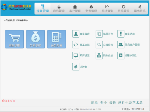 美萍自助餐触摸通是一款专为自助餐店面设计的软件,全触屏操作无需键鼠,界面简洁,操作直观,完全切合行业特点,特别是对自助餐押金的全面优化处理;无需培训,最优点单流程,点单结账最快2秒,最强退换菜,让店面收银真正快起来,后台有完善的商品管理和强大的报表统计,让您的管理真正简单到底!广泛适用于中西式自助餐行业