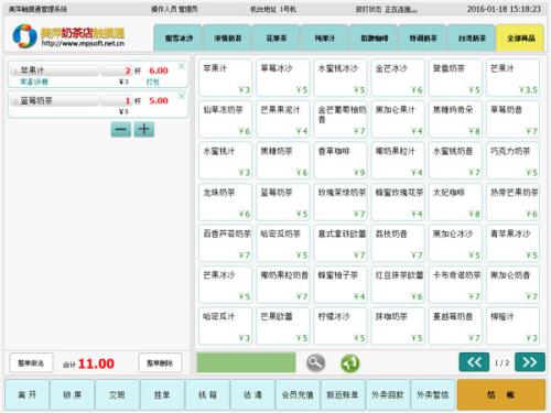 美萍奶茶店触摸通标准版管理软件美萍奶茶店触摸通是一款专为触摸屏POS机设计的软件,可以完全脱离键盘鼠标进行全触屏操作,界面简洁、操作直观、技术成熟,完全切合行业特点,无需培训,更优销售流程,销售结账更快2秒,方便强大的退换商品功能,彻底解决销售中的困扰,让奶茶店收银真正快起来;后台有完善的商品管理和强大的报表统计,让您的管理真正简单到底!广泛适用于奶茶店、水吧、时尚饮品店、茶饮店、冰激凌冷饮店等
