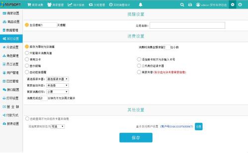 系统设置功能模块,用于系统的日常维护,包括对系统的初始化设置,如对商家卡级别,商家卡优惠方式,库存商品,提醒相关等以及系统用户、系统角色,分店相关,数据库管理和系统操作日志等等的设置;